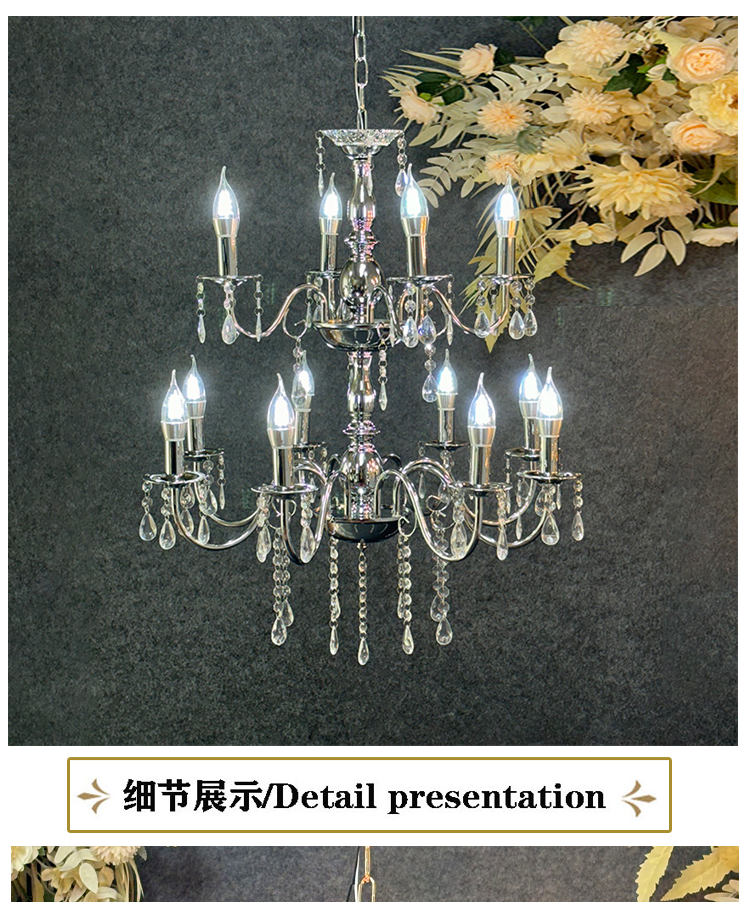 люстра металл на 8+4 рожков серебро 72*60 см